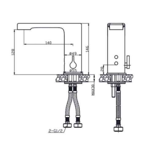 Διαθέτει μοχλό ανάμειξης για ρύθμιση ζεστού-κρύου νερου.