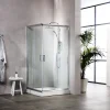 Βαρέως τύπου καμπίνα ντους, με δύο σταθερά φύλλα και δύο συρόμενες πόρτες.