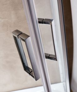 Βαρέως τύπου καμπίνα ντους, με δύο σταθερά φύλλα και δύο συρόμενες πόρτες.