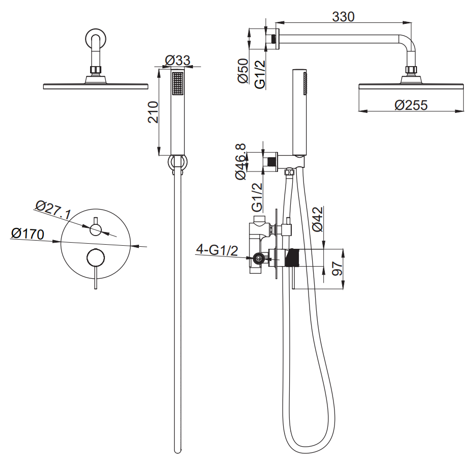 XEN 16010 N ΣΕΤ ΕΝΤΟΙΧ. ΜΕ ΜΙΚΤΗ 2 ΕΞΟΔΩΝ-ΒΡΑΧΙΟΝΑ-ΚΕΦΑΛΗ-ΠΑΡΟΧ-ΤΗΛ-ΣΠΙΡΑΛ BLACK MATT